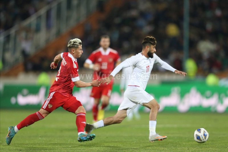 بازیکن ریزنقش و تکنیکی روسیه پس از دریبلی که داشت، توسط سعید عزتاللهی